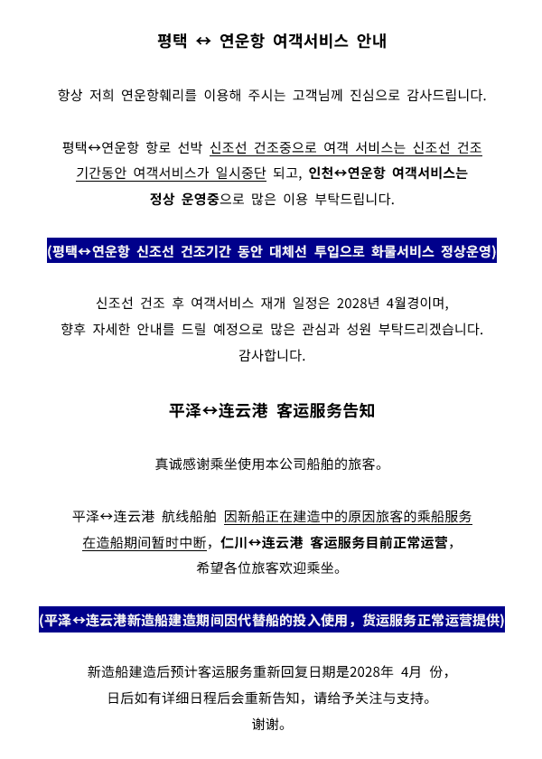 평택-연운항 항로 운항 선박